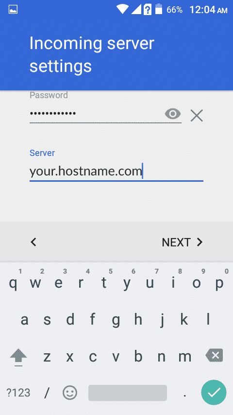 Step 5: Enter the server hostname in the incoming mail settings and then click “Next”.