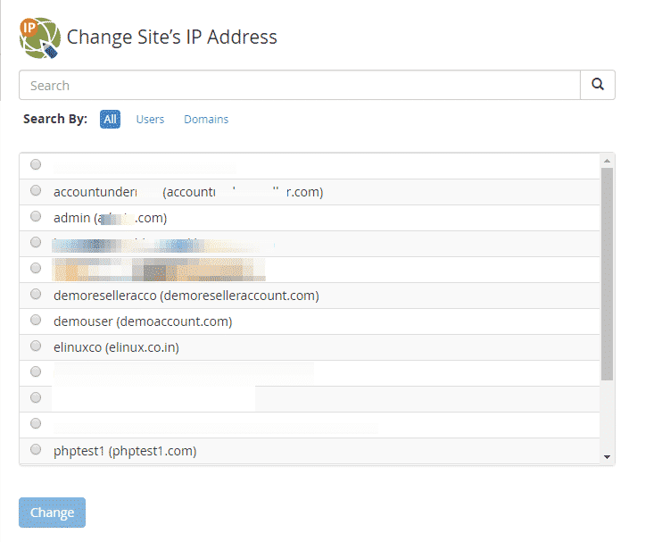 In order to simplify the WHM interface, WHM’s Change a Site’s IP Address interface is removed (Home >> IP Functions >> Change a Site’s IP Address).