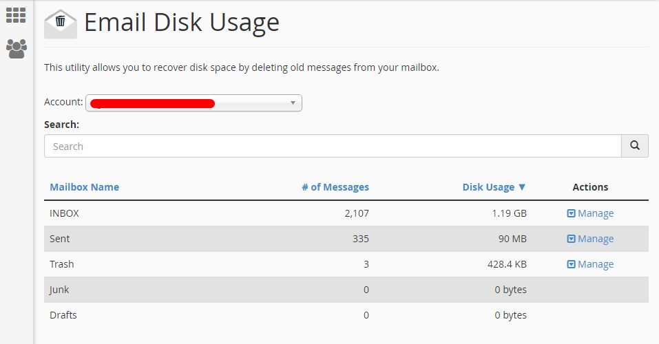 In cPanel & WHM version 64, mailboxes can be cleared easily with cPanel’s Email Disk Usage interface (Home >> Email >> Email Disk Usage). The tool allows you to view all of your mailboxes and quickly remove old emails or large messages. It is also integrated into the mailbox quota notifications to provide quick access to the users.
