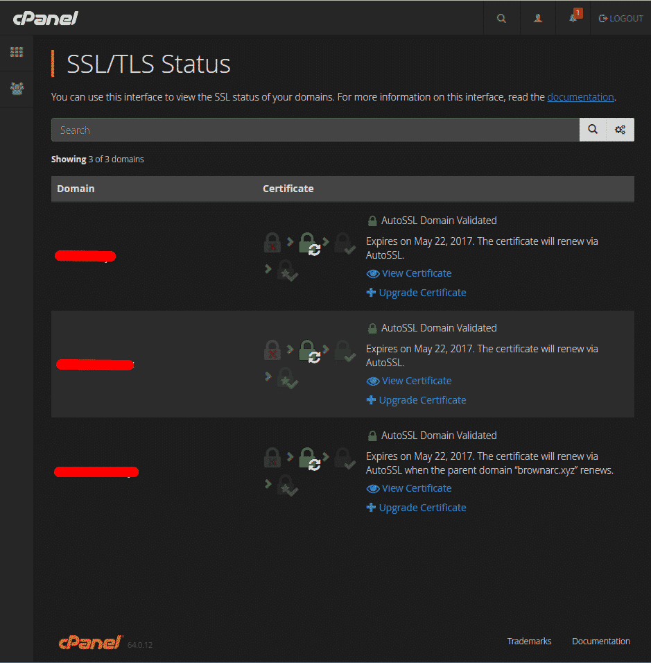 https://documentation.cpanel.net/display/64Docs/SSL+TLS+Status