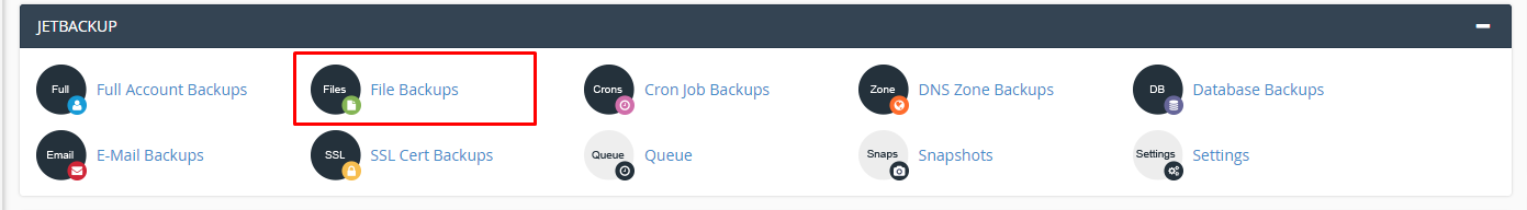 1. Click on the File Backups icon under the JetBackup section.